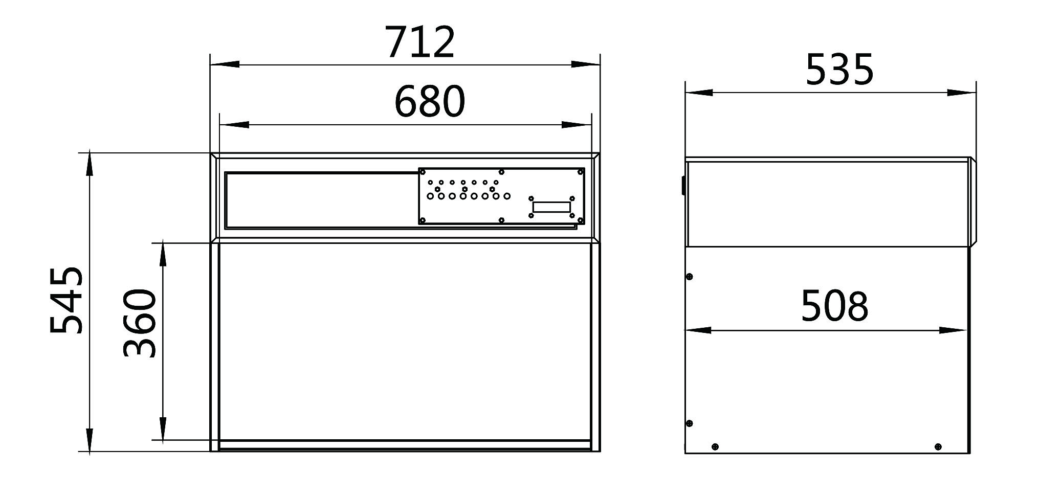 712 X 535 X 545 mm (Dài x Rộng x Cao)